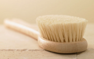 Dry brushing involves using a brush to lightly brush your skin without any water. When you do dry brushing, you don’t want your skin or brush to be wet.